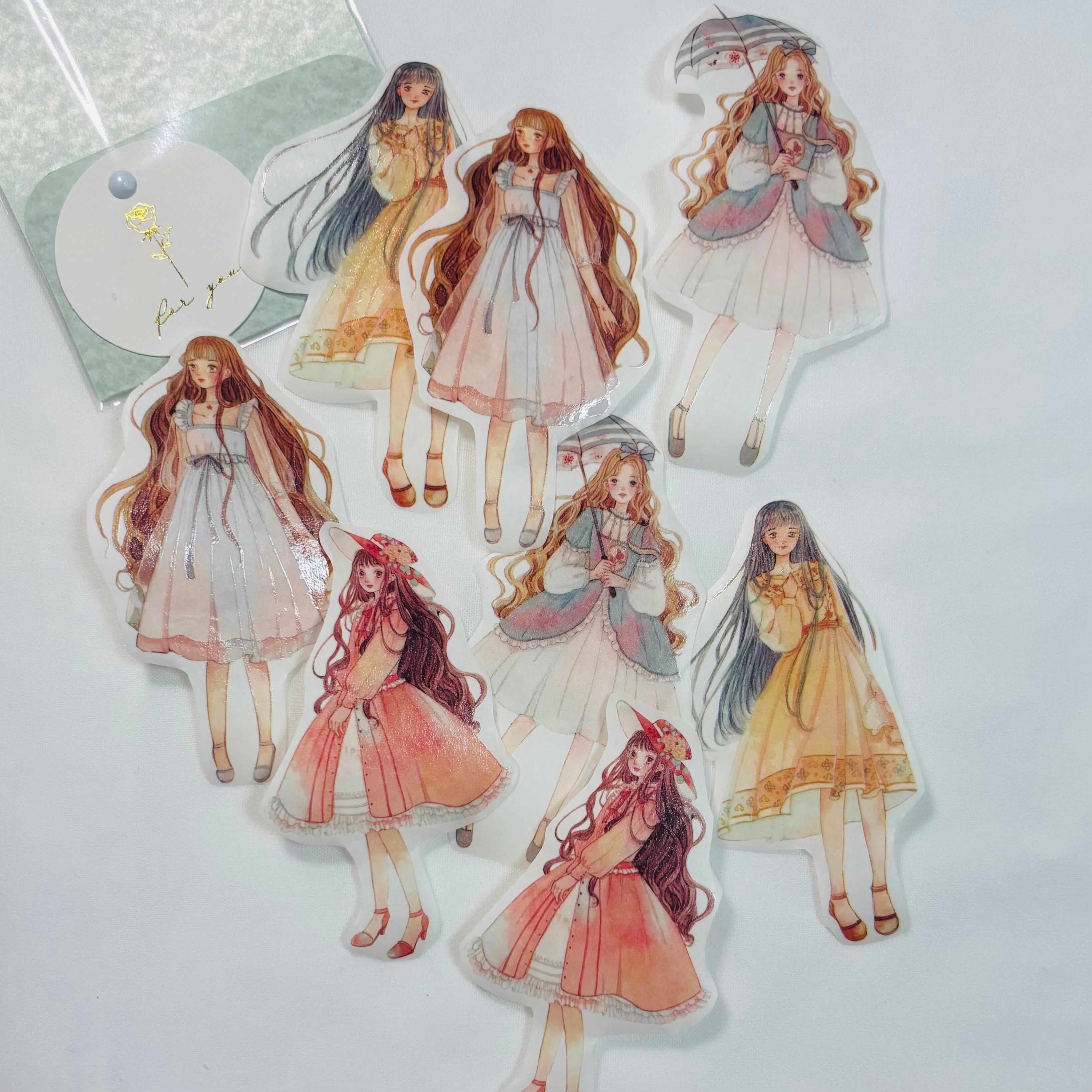 お姫様な女の子をデザインした、和紙タイプのシールセットです。