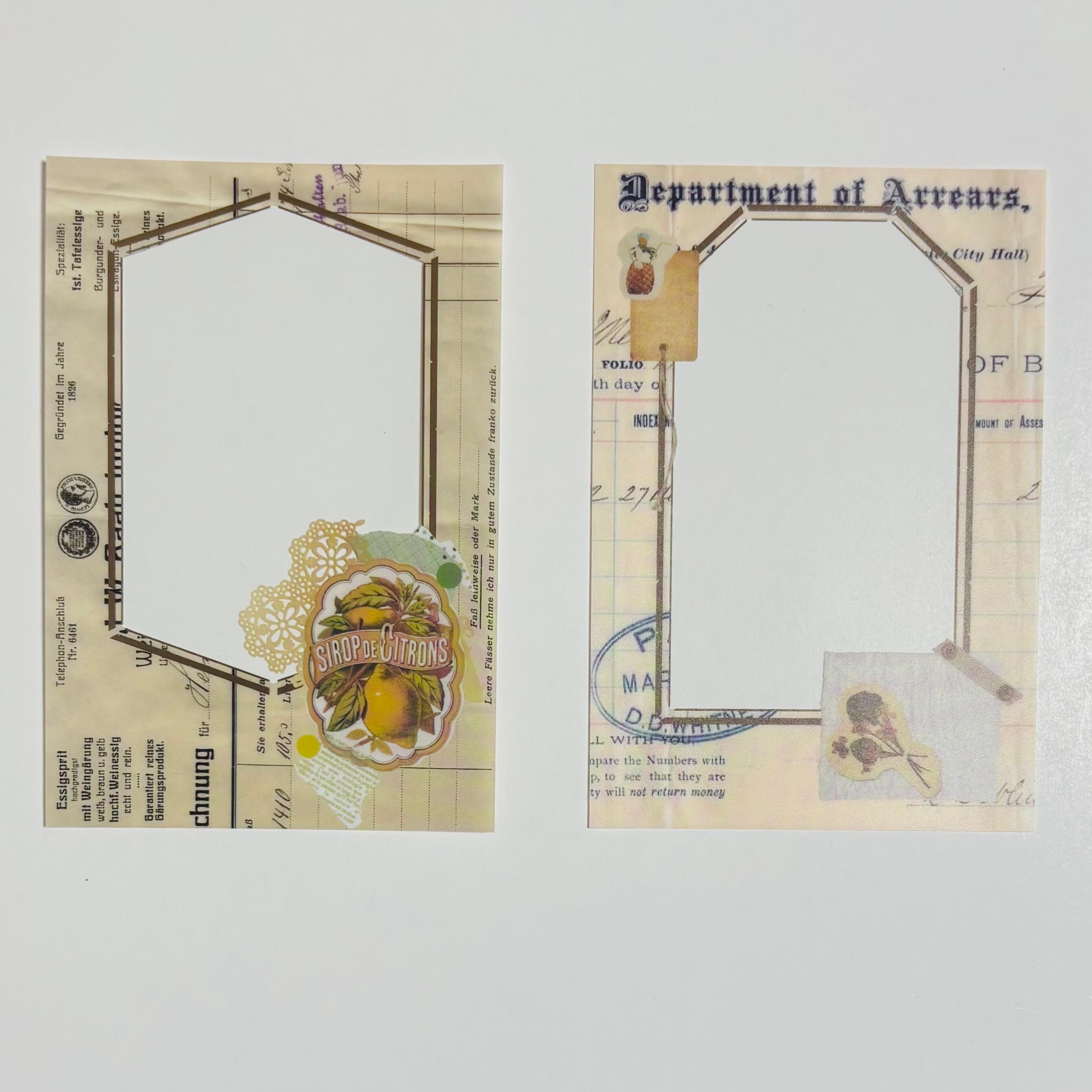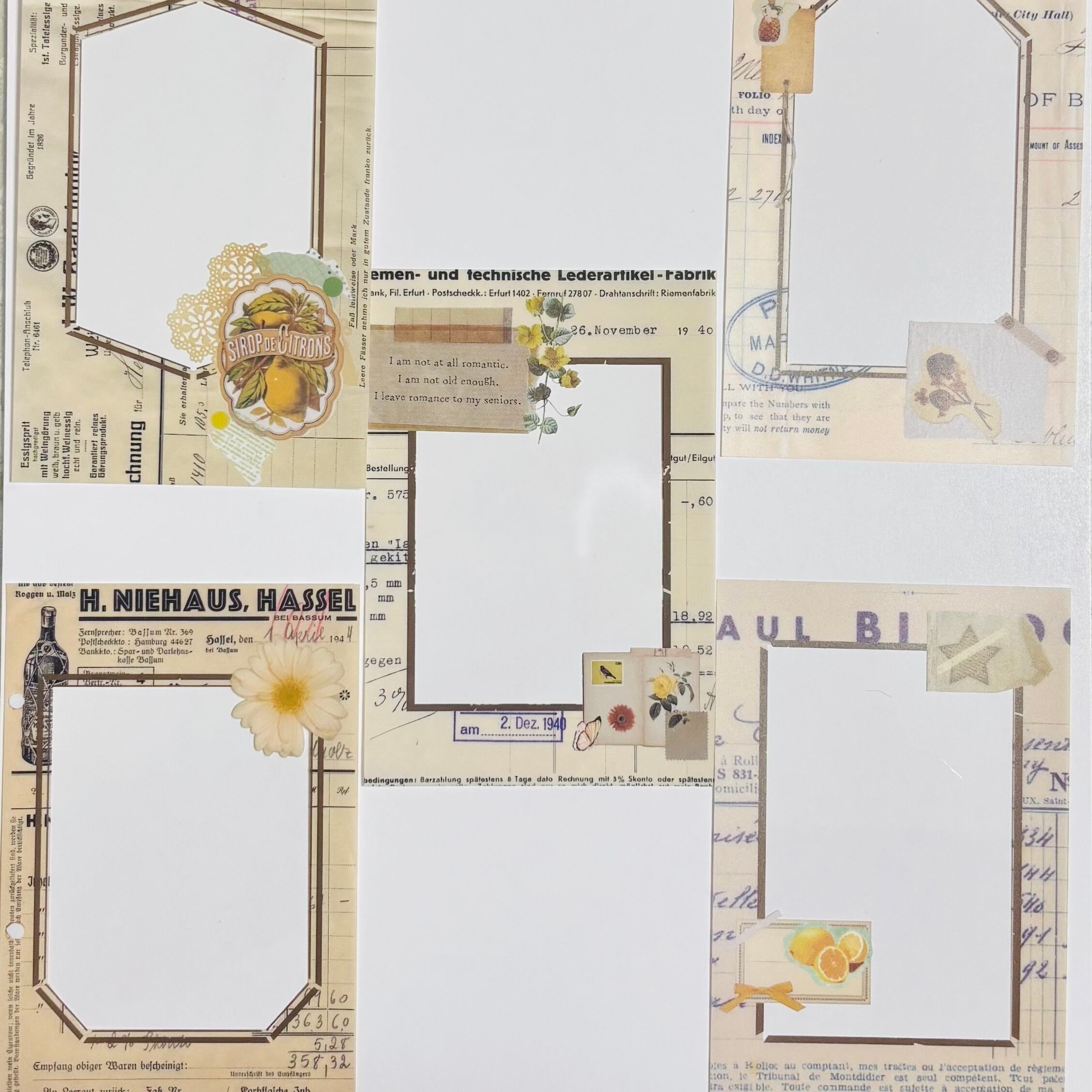 コラージュされたフレーム型シールのセットです。サイズは約10.5×6.8cmと使いやすく、手帳やノート、ラッピングにぴったり。全5枚入りで、さまざまなデザインが楽しめます。