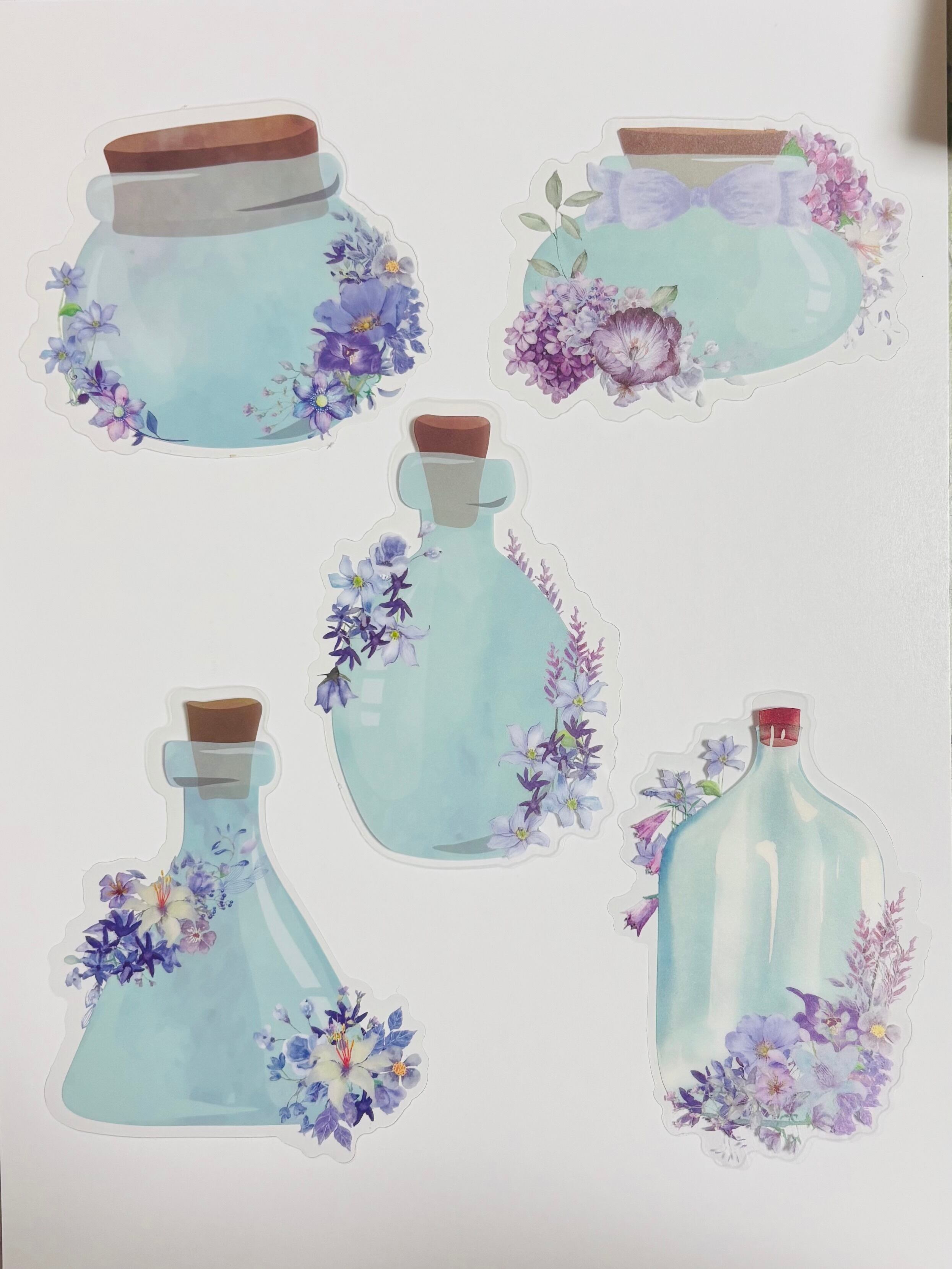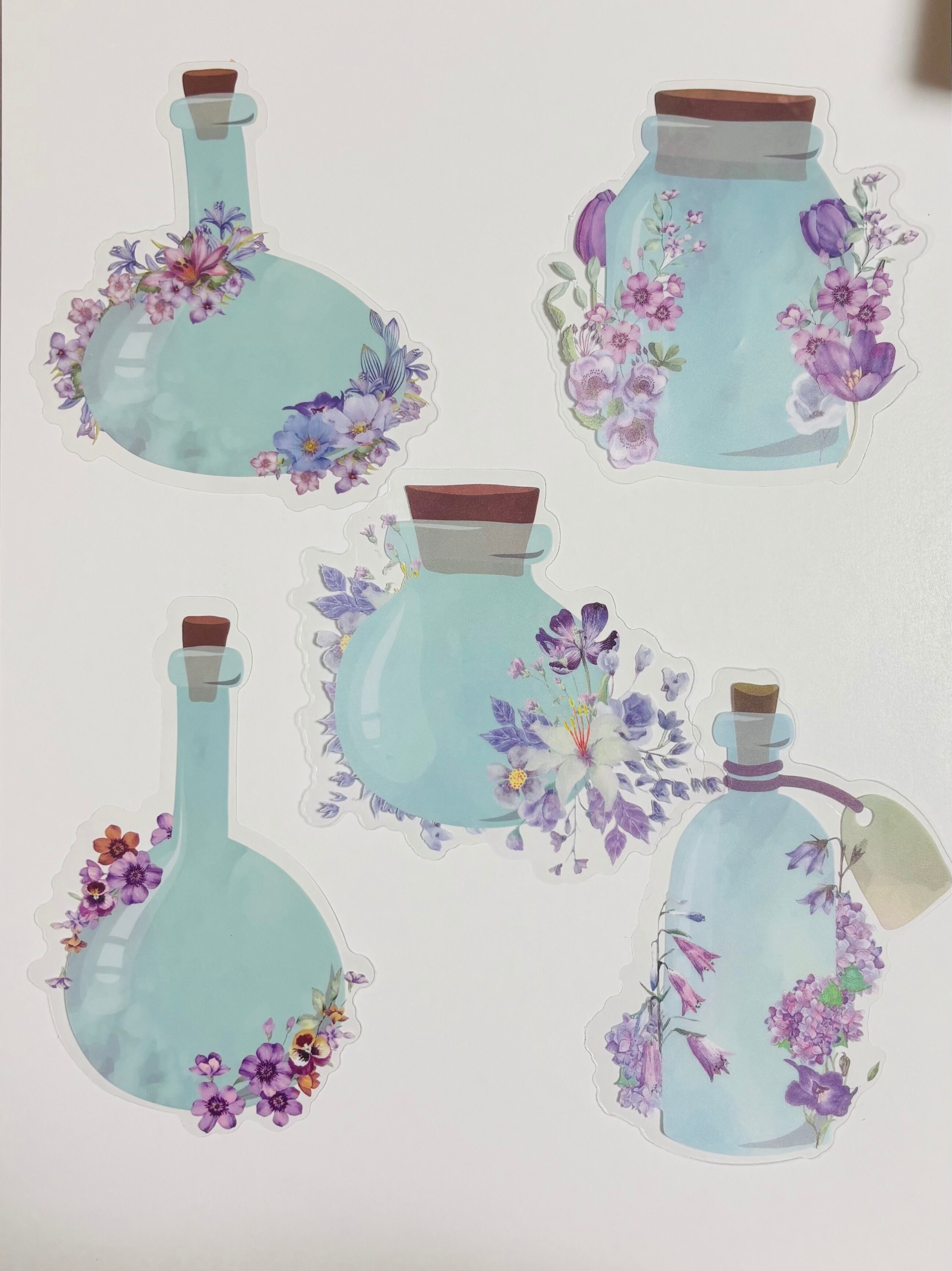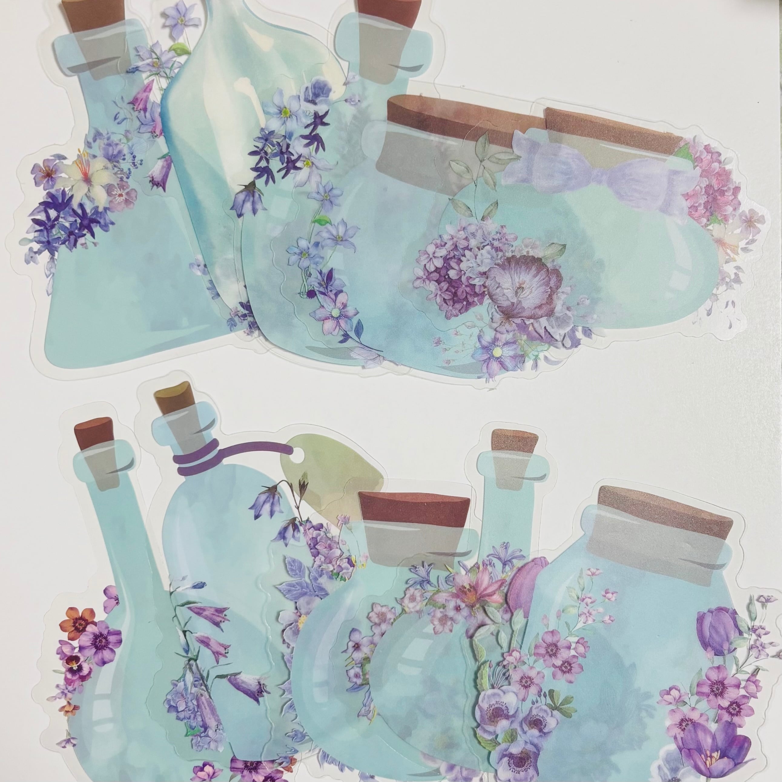 花瓶シールのセットです。最大サイズは約10×8cmと使いやすく、手帳やノート、ラッピングにぴったり。全10枚入りで、さまざまなデザインが楽しめます。