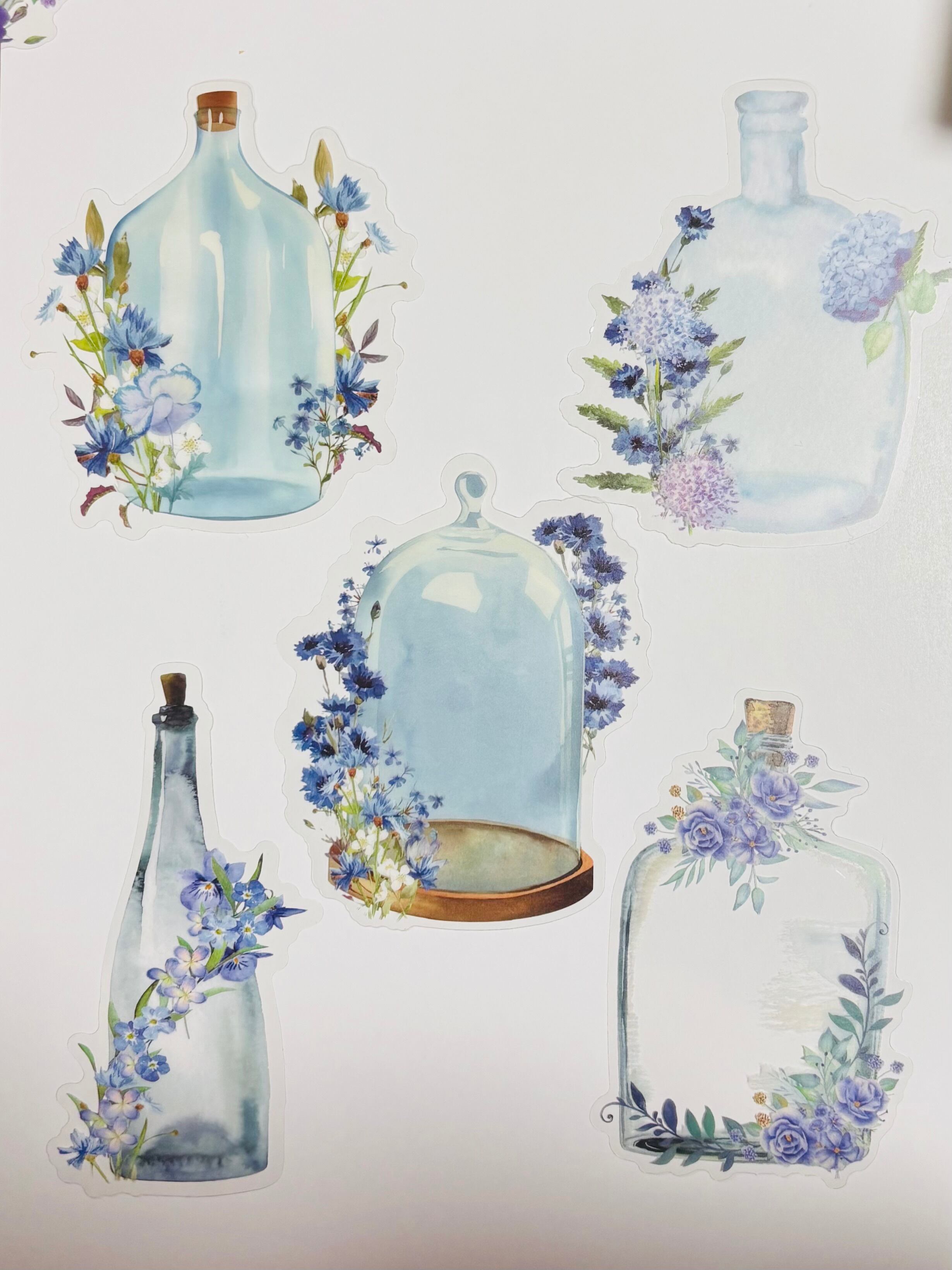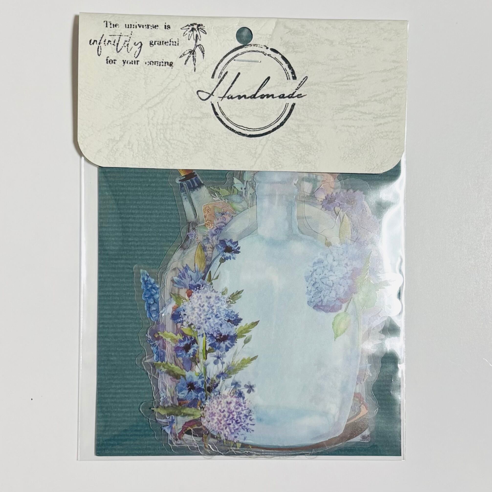 花瓶シールのセットです。最大サイズは約10×8cmと使いやすく、手帳やノート、ラッピングにぴったり。全10枚入りで、さまざまなデザインが楽しめます。