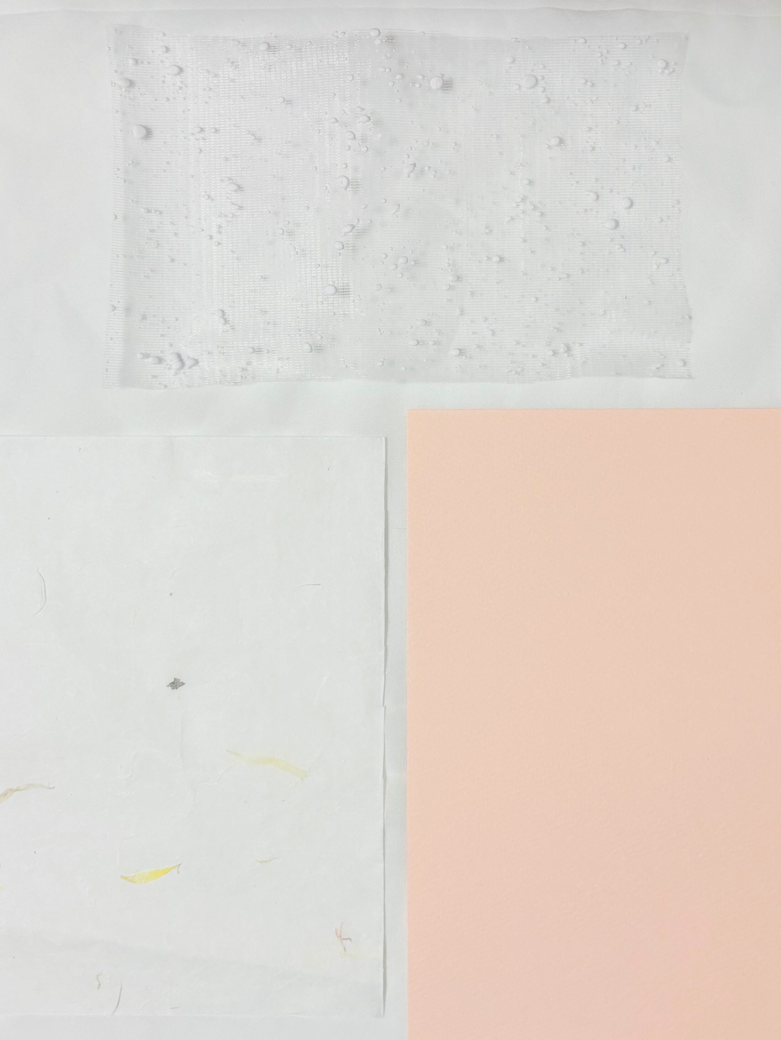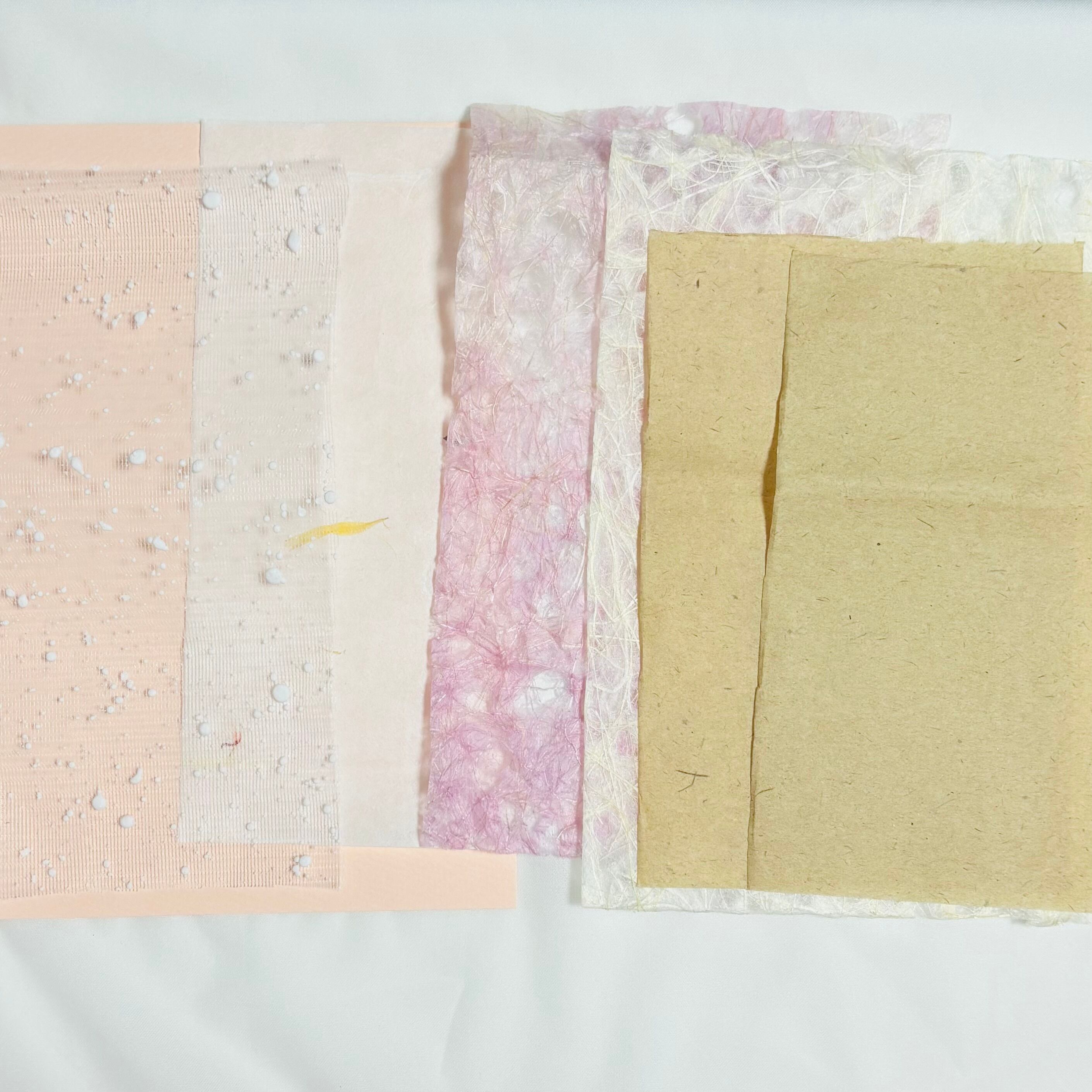和紙とメッシュでいつものコラージュ作品よりもワンランクオシャレな印象に。